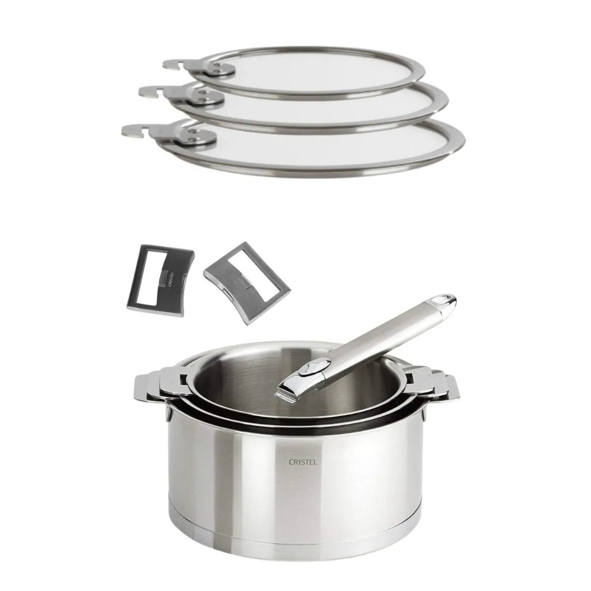 Cristel Strate Çıkarılabilir Kulplu 9 Parça Paslanmaz Çelik Tencere Seti