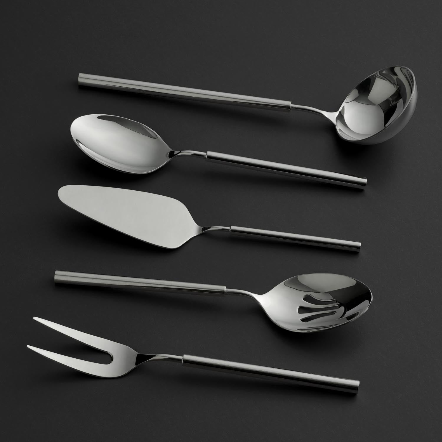 Jumbo 6000 Roller 5 parça servis setini temin ederek yemek servisi söz konusu olduğunda tüm ihtiyaçlarınızı eksiksiz bir biçimde giderebilirsiniz. Toplamda 5 parçadan oluşan bu setin içerisinde her bir ürün, üstün kaliteli Jumbo paslanmaz çeliğinden imal ediliyor. Set içerisinde servis çatalı, servis kaşığı, pasta küreği, çorba kepçesi ve yemek kevgiri olmak üzere 5 farklı parça yer alıyor. Servis çatalını steak ve benzeri et gruplarını servis ederken kullanarak etin parçalanmadan tabaklara yerleştirilmesini sağlayabilir, servis kaşığından faydalanarak ise salatadan mezeye pek çok farklı yiyeceği eşit bir biçimde tabaklara dağıtabilirsiniz. Pasta ve benzeri tatlıları ve hamur işlerini servis etmek için pasta küreğinin işlevselliğinden yararlanabilirsiniz. Elbette çorbalarınızı ve sulu yemeklerinizi servis etmenize yarayacak çorba kepçesi ve diğer yemek çeşitlerinin sunumunu yaparken size kolaylık sağlayacak kevgir de bu setin olmazsa olmazları arasında yer alıyor.