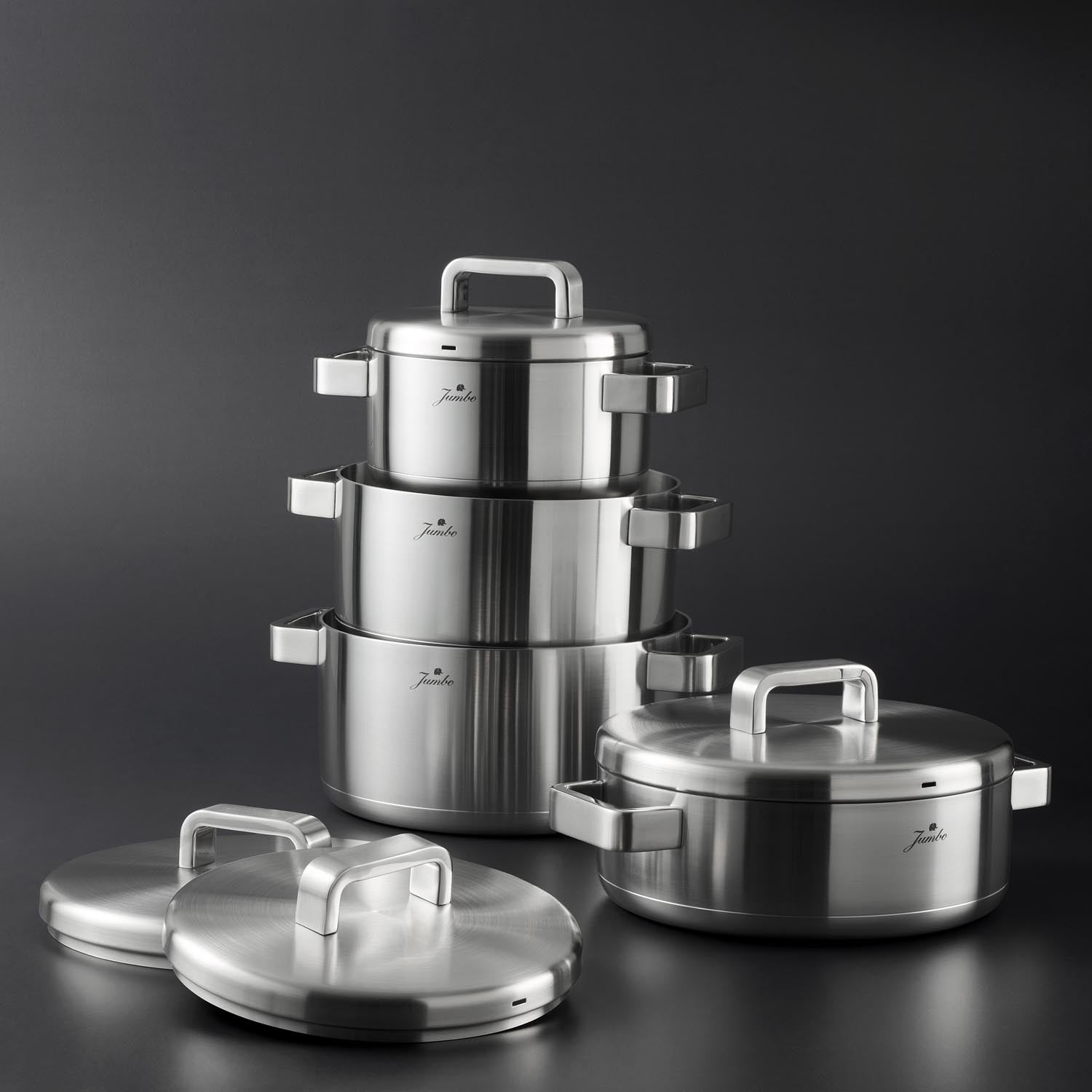 - Jumbo 3 ply tencereler ısının hızlı ve eşit bir şekilde dağılmasını sağlar, bu da yemeklerin daha verimli bir şekilde pişmesini sağlar.
