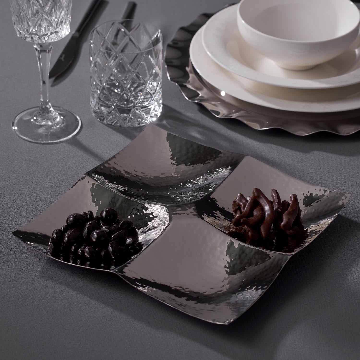 Sunumlarınızın göz alıcı bir parçası olmaya aday olan Quenny kare servislik, Jumbo kalitesinde sizlere sunuluyor. Parlak göz alıcı yapısı misafirlerinizi etkileyebilmenize de yardımcı oluyor. Jumbo Quenny kare servislik ihtiyaçlarınıza harika bir çözüm sunuyor. Estetik tasarımıyla dikkatleri üzerine çeken bu kare servislik pratikliği ile de kullanıcılarından tam puan almayı başarıyor. Sofranıza aynı andan birden fazla alternatifin gelmesini sağlayan bu servislik zarafetinin yanında işlevselliğiyle de öne çıkmayı başarıyor. Özel bir davette veya günlük yaşantıda kullanıma uygun olan bu ürünü dilediğiniz zaman ve yerde kullanabilirsiniz. Atıştırmalık, kahvaltılık, kuruyemiş gibi yiyeceklerin sunumuna uygun olan kare servislik kahvaltı sofralarından yemek sofralarına kadar her masada kullanıma uygun ürünler arasında yer alıyor. Dilediğiniz yiyeceği zarif bir şekilde sunmanıza yardımcı oluyor. Siz de Quenny kare servislik ile sunumlarınızı çeşitlendirebilirsiniz.