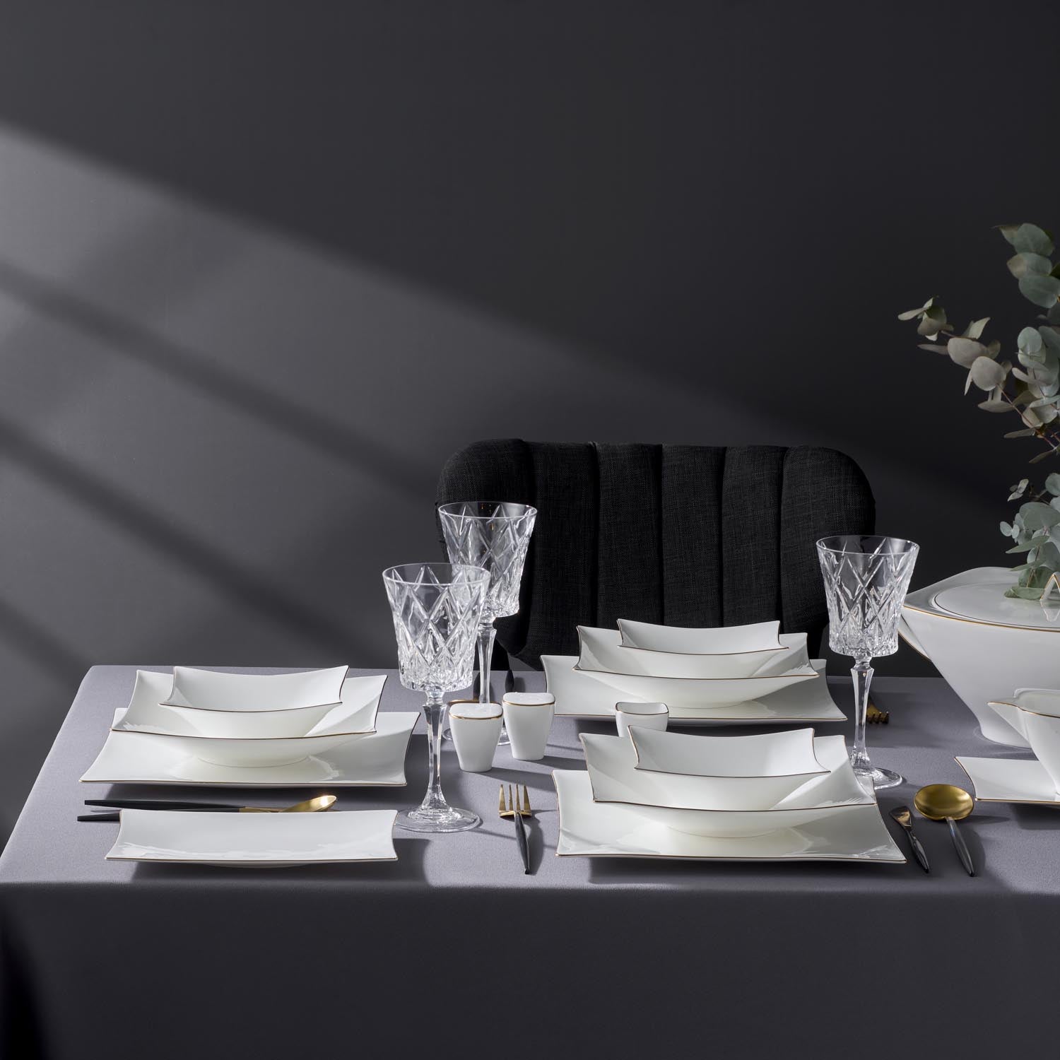 Jumbo Wind Gold 64 Parça 12 Kişilik Kare Yemek Takımı