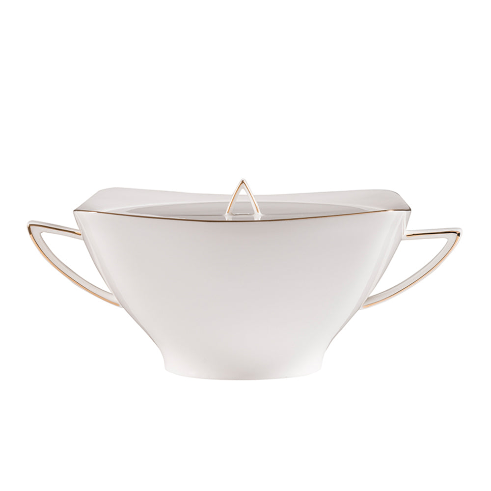 En şık davet sofralarının baş tacı olmaya aday Jumbo Wind Gold yemek takımı, eksiksiz parçaları ve hayran bırakan tasarımıyla karşınızda. Geleneksel olarak oval ya da yuvarlak formlarda tasarlanan yemek takımlarına adeta meydan okuyan bu ürün, kare formu sayesinde yerleştirildiği sofranın ilk bakışta harika bir deneyim yaratacağının sinyalini veriyor. Çorba kasesinden meze tabağına, biberliğinden çorba tenceresine kadar her bir parça kare formda tasarlandığı için set kendi içerisinde harika bir uyum yaratıyor. Tamamı beyaz renkte olan bu takımın kenar kısımlarında minimalist gold çizgiler hakim. Kısacası her bir detayı ile mükemmelliğin simgesi olan bu yemek takımıyla siz de misafirlerinizi sofranıza hayran bırakabilirsiniz.