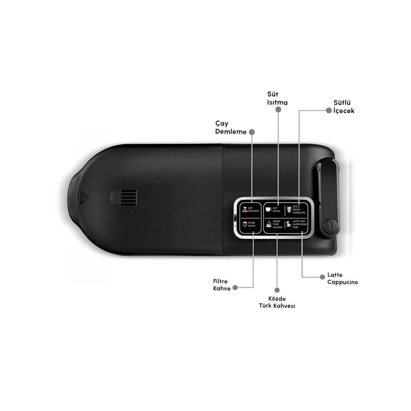 Süt köpürtme aparatı ile tüm sütlü içecekleriniz için istediğiniz yoğunlukta süt köpüğü elde ederken, özel ağızlı Barista cezvesi, kahvelerinizi uzman bir barista gibi fincanınıza koymanıza yardımcı oluyor. Ürüne özel oluşturduğumuz tarif kitapçığı sayesinde Latte Türk ve Cappuccino Türk tarifleri de hep elinizin altında.